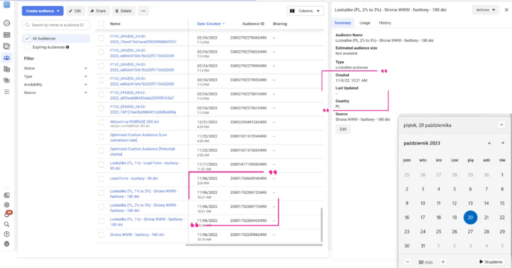 Facebook, mimo swojej potęgi, nie jest doskonały w aktualizowaniu niestandardowych grup odbiorców. Na przykład, grupy niestandardowe są często aktualizowane po około 48 godzinach lub dłużej (z wyjątkiem tych kampanii opartych o katalog produktów tu aktualizacja jest natychmiastowa). Tymczasem lookalike (podobne grupy) nie są rutynowo aktualizowane. To może prowadzić do utraty potencjalnie cennych odbiorców.