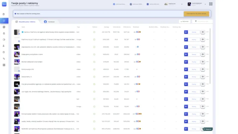 Zobacz na screenie poniżej, to lista Twoich opublikowanych postów na fanpage. Masz tam informacje o tym, jaki to post. A dokładnie jego typ. Masz dane statystyczne.