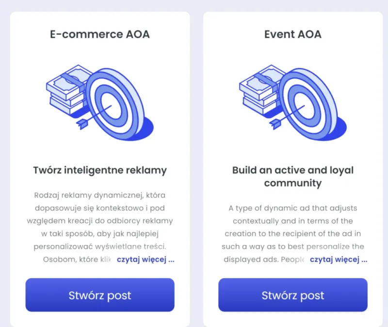To kampania analogicznie taka sama jak AOA Event, tworzysz ja dokładnie tak samo. I ma te same możliwości. Jednak ta kampania to kampania inteligentna, stworzona i dedykowane dla sklepów internetowych i takich firm które potrzebują konwertującego (wartościowego) ruchu na stronie www. Ta kampanie jest wyjątkowa jeszcze z jednego powodu,i jest dostępna tylko i wyłącznie w FastTony Smart, nie da rady zrobić takiej kampanii przez Ads manager. U mnie ten typ kampanii jest obowiązkowy. Traktuję ten rodzaj kampanii jak kampanię podstawową. Pamiętaj by sprzedaż obierać o oba typu kampanii AOA E-commerce tanio zasili twoją stronę nowymi i zainteresowanymi ofertą klientami a AOA event sprzeda Twoje produkty lub usługi. Uruchom obie kampanie AOA i pozwól sztucznej inteligencji działać dla Ciebie i Twojego biznesu.