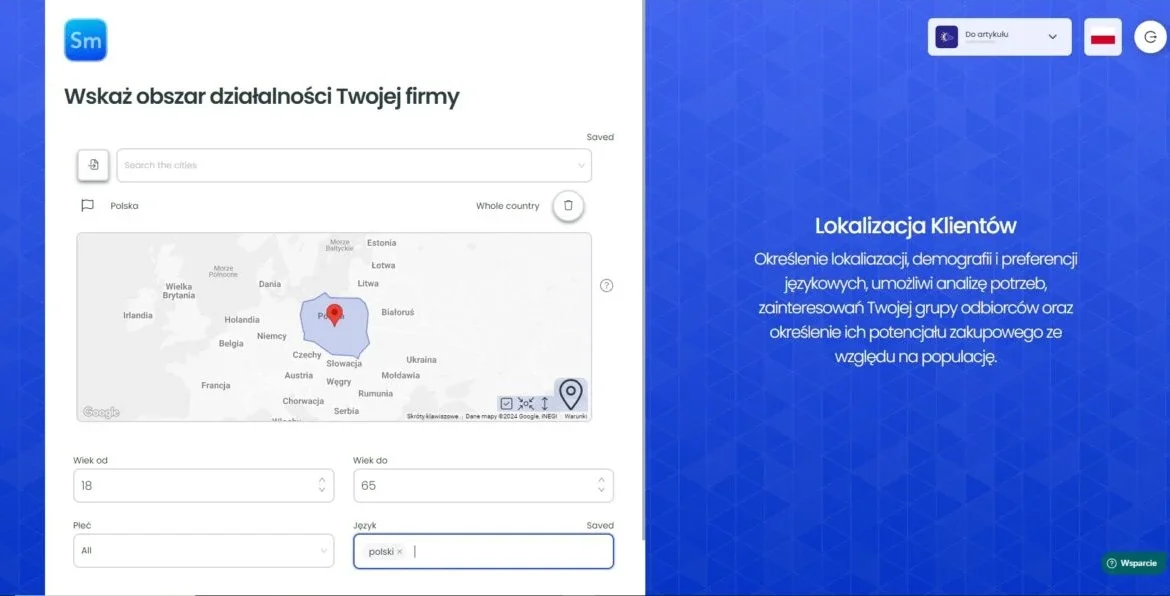 Kolejno, przechodzimy do określenia podstawowej lokalizacji wyświetlania Twojej reklamy, oraz danych behawioralnych klientów. Czyli w jakim są wieku, jakie są płci i w jakim języku użytkują Facebooka. Czyli sama podstawa.