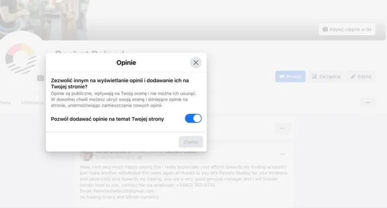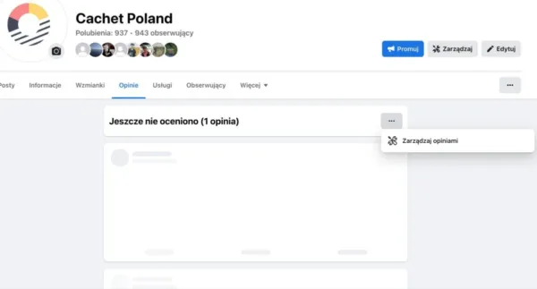 Pamiętaj, że wyłączenie sekcji opinii spowoduje usunięcie wszystkich istniejących opinii na Twoim fanpage’u. Jeśli zdecydujesz się ponownie włączyć tę funkcję, opinie nie zostaną przywrócone.