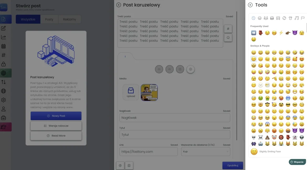 W FastTony Smart tworzenie postu w formie karuzeli zostało zredukowane do kilku intuicyjnych kroków: